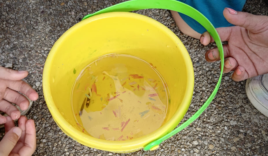 I fashioned a fishing net from a broom stick at home and taped the fishing net in the front. Unlike yesterday, Little-R was happy for a while while we saw the fishes. We then let them go. I know the trick to catching fish now with a net!